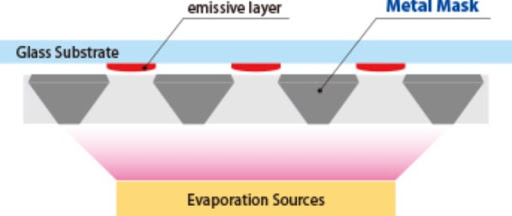 반면 OLED는 유기물 소재를 승화시켜 유리기판에 달라붙는 방식입니다. 온도는 150~400도 사이로 유리기판에 무리를 주지 않고 대면적으로 증착할 수 있죠.