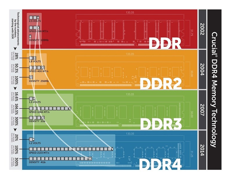 DDR 규격은 아래와 같이 만들어졌습니다. 2002년 DDR 규격을 시작으로 2014년 DDR4규격까지 말이죠.