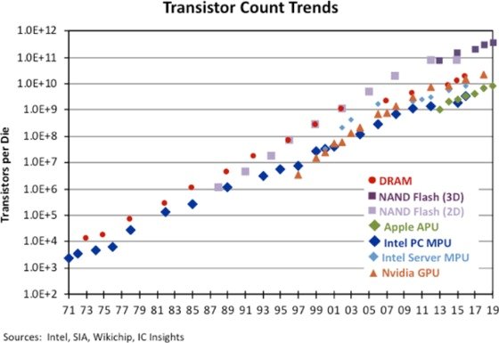 물론, 칼로 무를 자르듯이 그가 주장한대로 2년에 2배 정도로 집적회로의 성능이 정비례하게 성장하진 않았습니다. 하지만, 50년이 넘는 세월동안 그의 법칙대로 반도체는 발전해왔으니, 꽤 오래전 반도체의 잠재력을 정확히 예측한 것은 분명한 것 같네요...