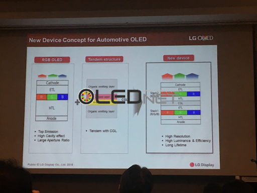 [IMID 2018] LG Display, showcased 2-stack RGB OLED for automobile OLED with improved life span.